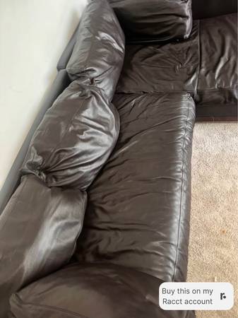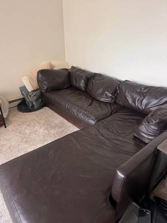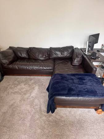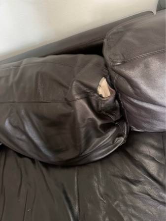 One of the coziest couches! We are moving Saturday so would love for this to be picked up then. Has one pillow with a tear but you could honestly just get rid of that pillow as we sit on it with one less pillow anyways. Some scratches near bottom of couch from a dog.
