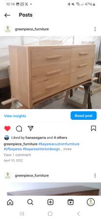 I replicate many of the Restoration Hardware Designs. Usually, for about 40-50% less. I use solid hardwoods and panels, no mdf or particle boar. Soft close slides and hinges. Many of knobs/pulls and finishes to choose from. All pieces can be customized to your specs. I build dining tables, benches, nightstands, coffee tables, console tables, built-in cabinets, kitchen cabinets, bathroom vanities, dressers, beds, sideboards, buffets and more.