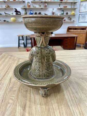 Celadon-Glazed Lamp Stand, Jin dynasty (Jurchen) 12th C. Measurements: 6”W x 7”L