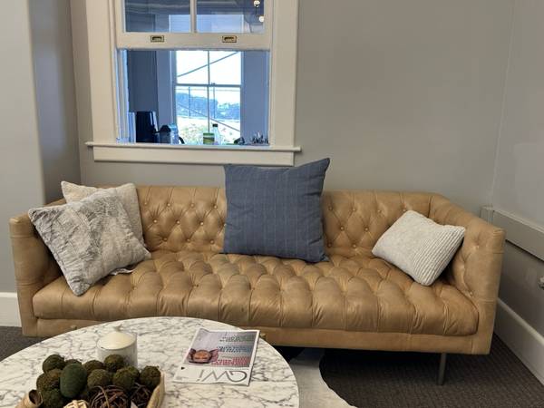 Moving out of an office in the Presidio by 10/1. Coffee table alone for sale, or entire sitting room setup if desired! Dimensions: 35" diameter.