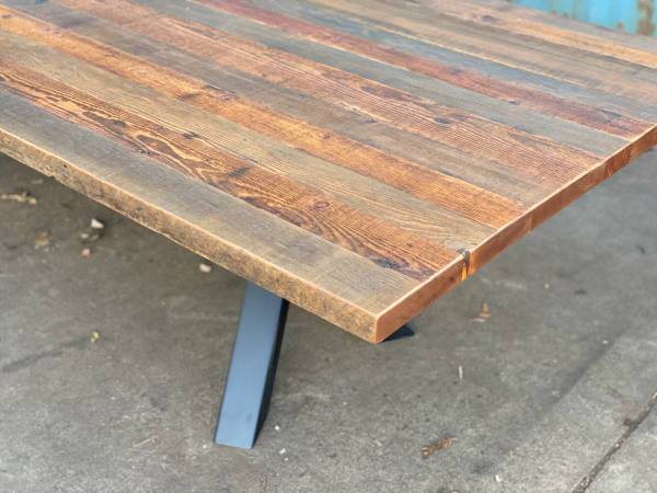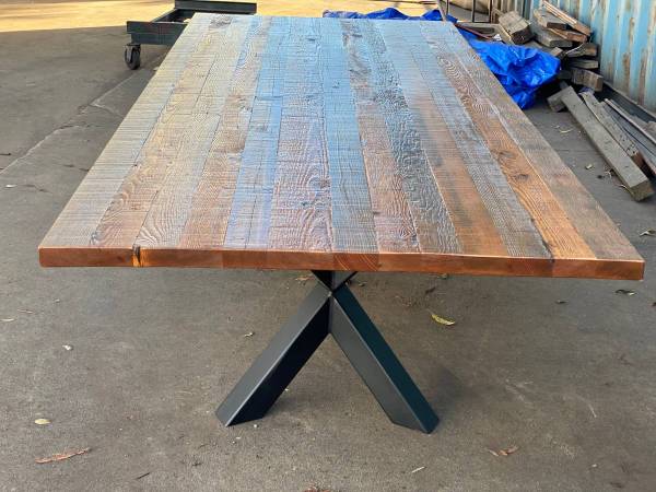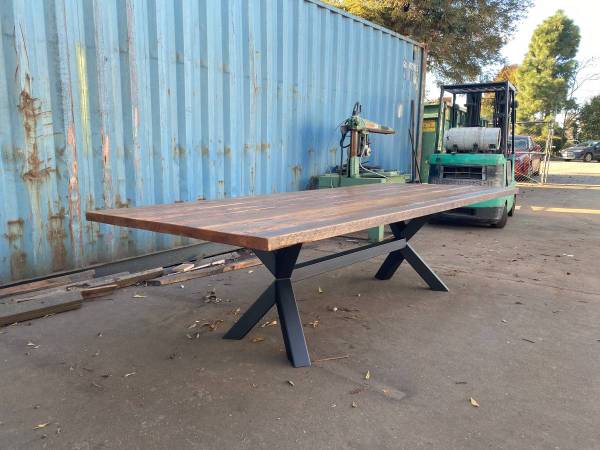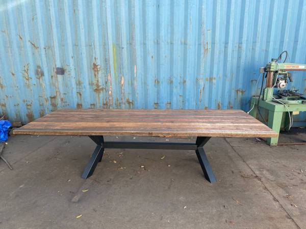 Rough cut rustic Douglas fir dining table. Industrial steel base. 120x42x30 Custom sizes and designs available. Delivery and setup is included Custom furniture, interior design, home decor, rustic...