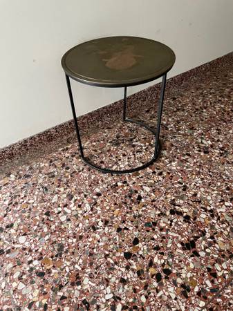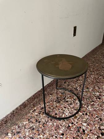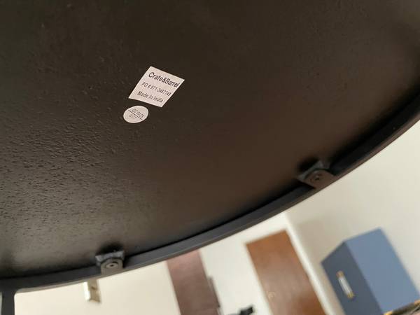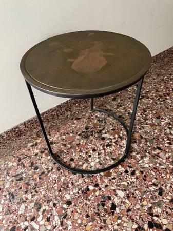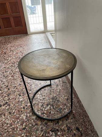 This is a beautiful handcrafted, sturdy, high quality Crate&Barrel Knurl Large Round Accent Table Made in India. Great as a side table, end table, bedside table, nightstand. Also great as a plant stand / display. Beautiful in the entry way, in a corner, living room, office, bedroom, as a sitting nook table. Multi-functional, sleek and space saving. There is a bit of blemish on top but can be refinished or covered up with a lamp or plant. Selling because moving. Originally purchased for ~$260.