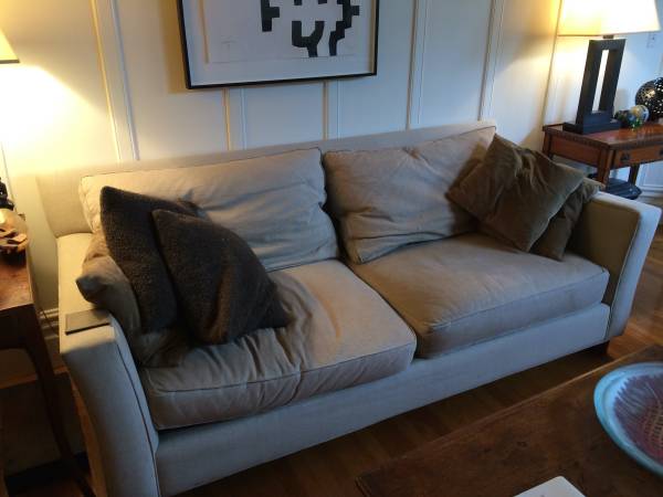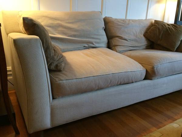 Crate & Barrel 'Loft' Collection. The fabric is very clean, but there is some sun damage. No pets or smoking ever on this furniture. I am the original owner. Down feather filled cushions....