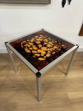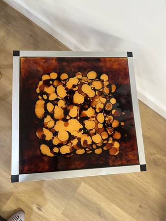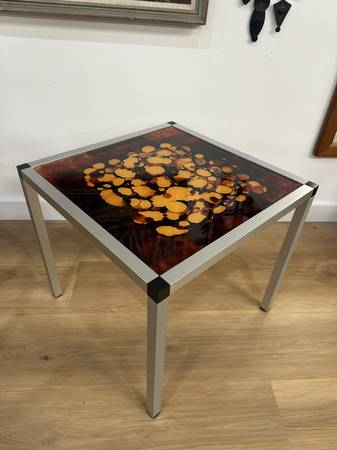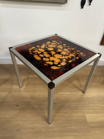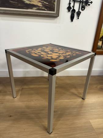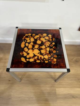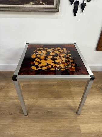 Danish 1970's Glass & Aluminum Side Table Measurements: 19.75” x 19.75” x 18.00”H