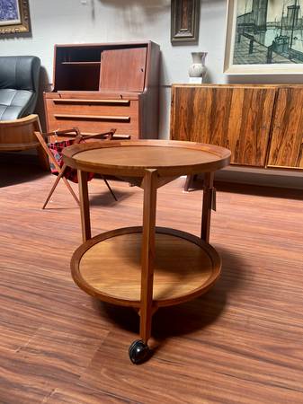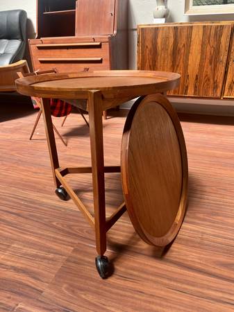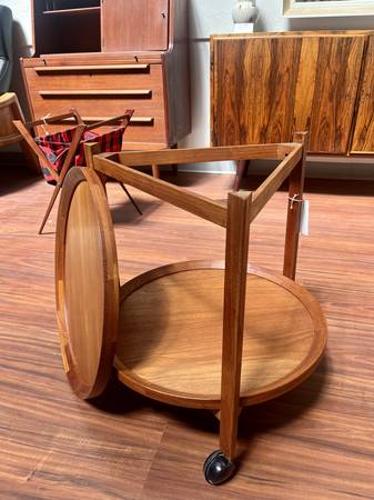 Danish Modern Teak Bar Cart w/ Removable Trays by Sika Dimensions: 19.75” x 21.5”
