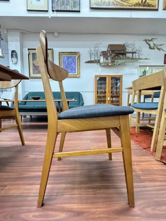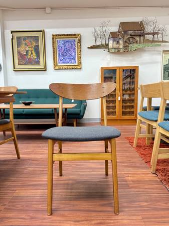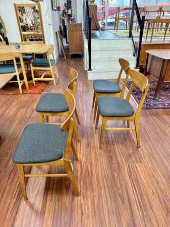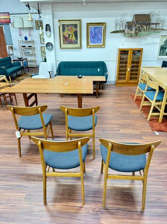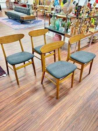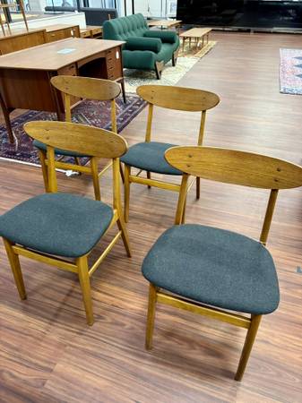 Danish Modern Teak & Beech Dining Chairs by Farstrup Dimensions: 18.25”W x 15.75”D x 30.25”H Seat: 18.25”H