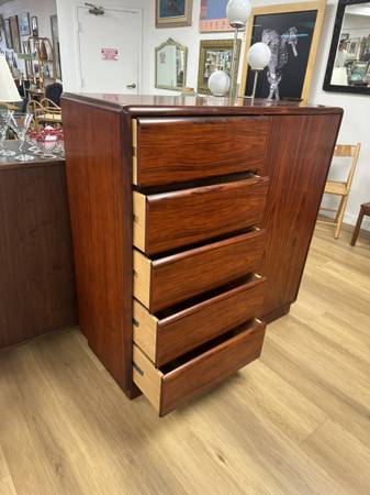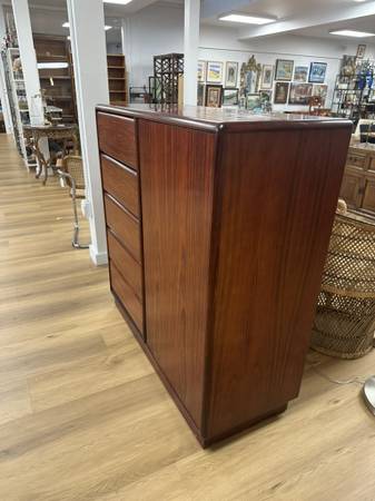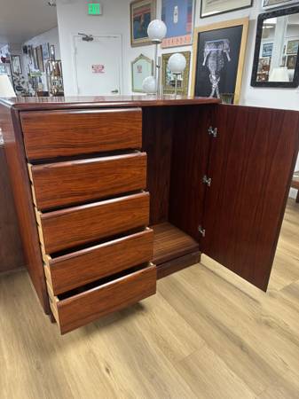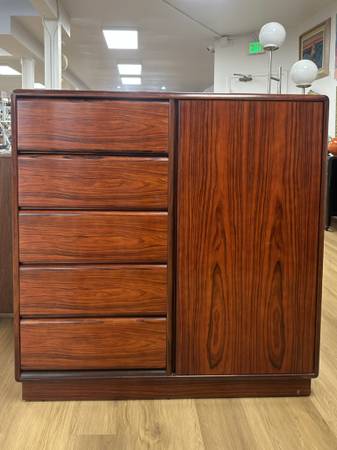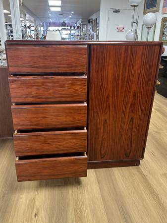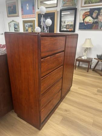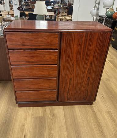Danish rosewood dresser w/ cabinet by Brouer Mobelfabrik, 1960s Minor Veneer warp on surface. Measurements: 46”W x 18”D x 46.25”H