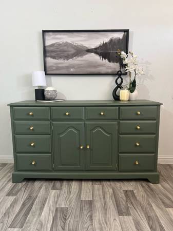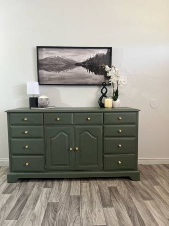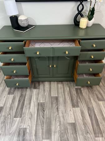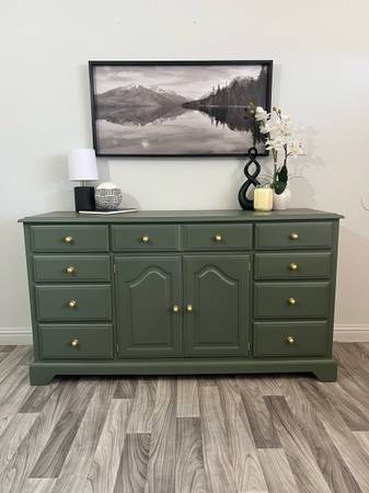 Gorgeous Dresser/Sideboard! Refinished solid wood dresser painted Rosemary , it has 12 drawers all lined with waterproof liners , new brass hardware. Pick up in San Jose ca! Delivery included!...