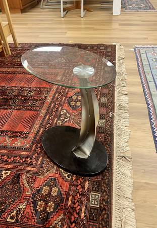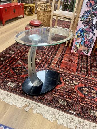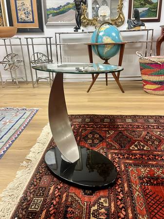 Elit Tribeca Scoop Table with Tempered Glass Top Measurements: 12”W x 19”D x 22”H