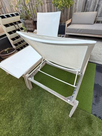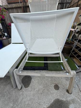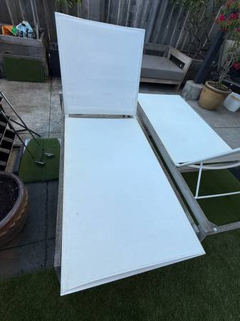 Frontgate luxury outdoor patio lounger chairs. Nice modern clean look. In great condition. Reclines in multiple positions. Comfy sling fabric. $500 for both loungers Retails for $1200+