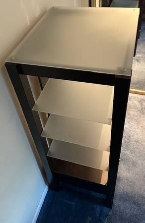 ITEM: Frosted Glass Cabinet with Drawer Originally for audio, quite versatile to accommodate all manner of display and storage in a dining room, living room or bedroom. DIMENSIONS (Inches) Width: 21...