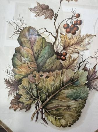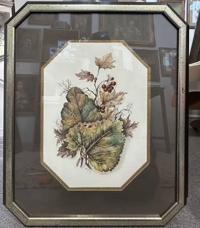 Green Fall Leaves Octagon Framed Artwork, Signed Measurements: 18.5”W x 22”L