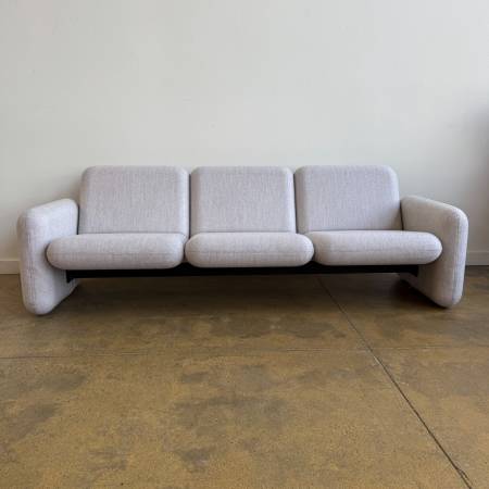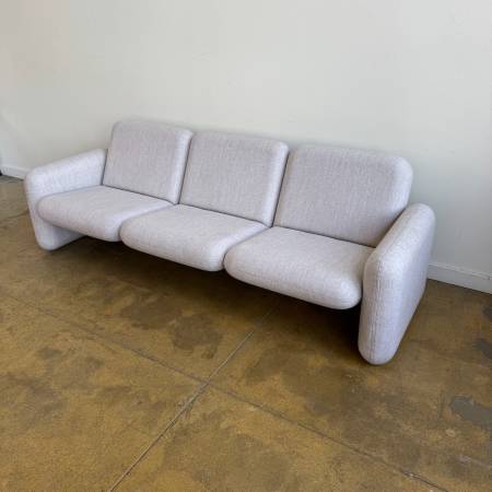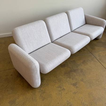Feeling just as fresh today as when it was first introduced, the recently re-launched Wilkes Modular Sofa Group (1976) combines comfort, clean lines, and durability in playful form, with new colors and fabrics. Nicknamed “Chiclet” because of its rounded-edge cushions’ resemblance to pieces of Chiclet gum, this collection was designed by Ray Wilkes, a self-described minimalist. “The fact is, I like total simplicity,” he says.