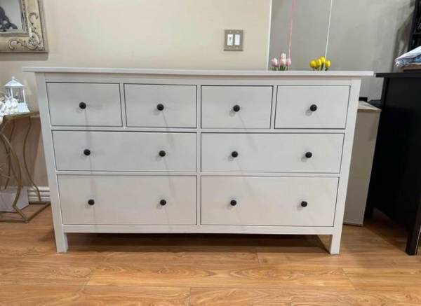 Beautiful and timeless IKEA HEMNES dresser in white, perfect for bedroom, nursery, or entryway storage. This solid, well-made dresser is in excellent condition — no scratches, dents, or damage. All drawers slide and close smoothly.
