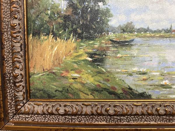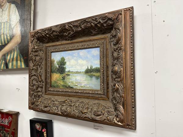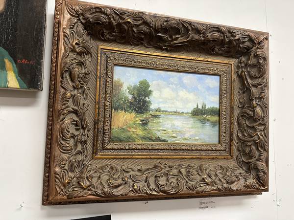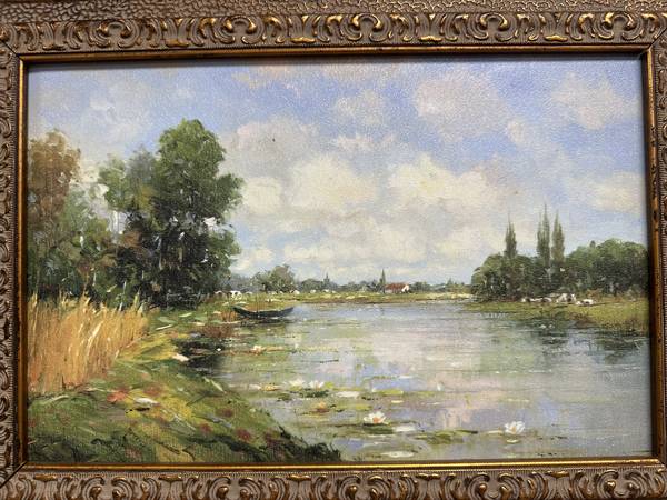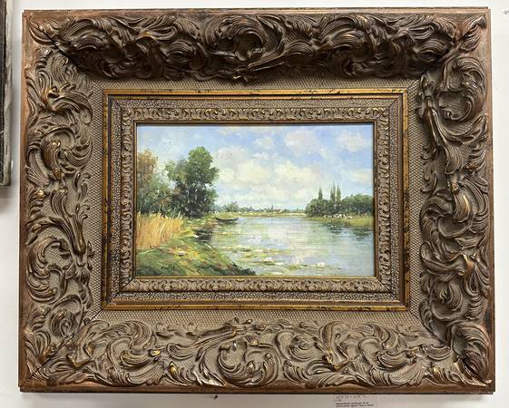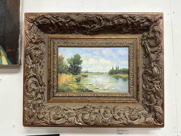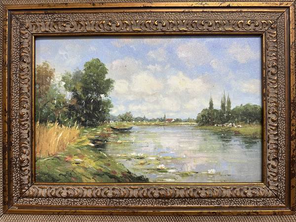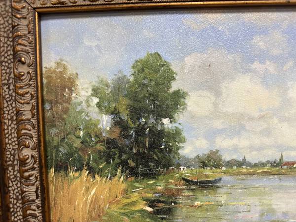 Impressionist Landscape Oil on Cavas Panel, Signed- Heavy French Frame Measurements: 23.5”W x 19.5”L
