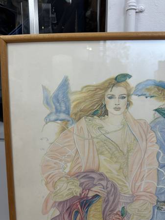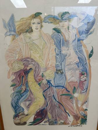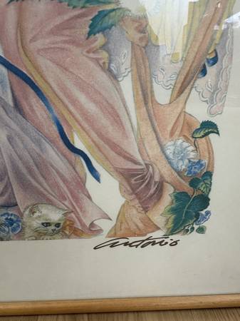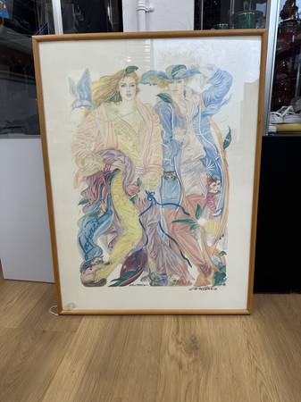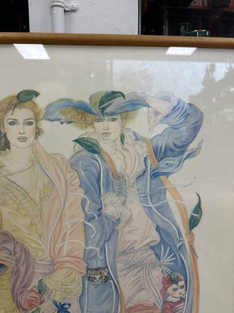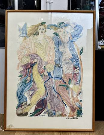 “Laforet” 2 Well Dressed Women Framed Drawing by Antonio Lopez Measurements: 21.75”W x 28.75”L