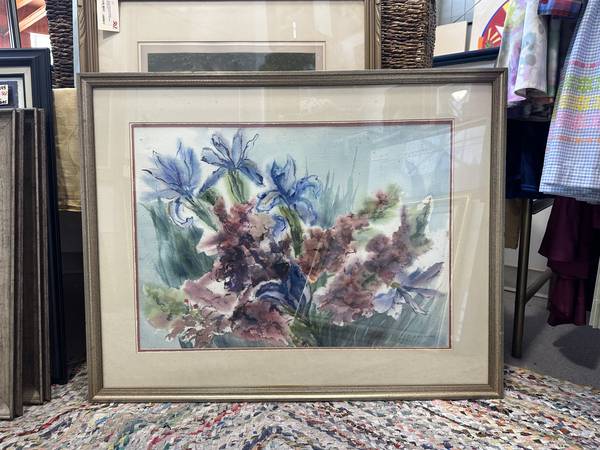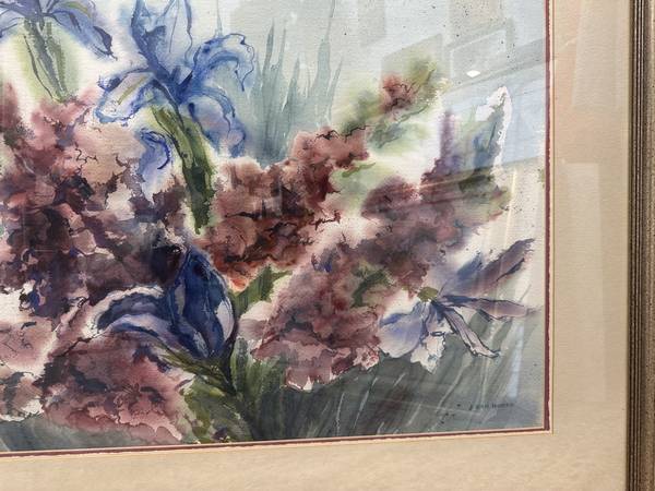 Large Framed Painting of Flowers By J Van House Measurements: 37.75”W x 29.5”L
