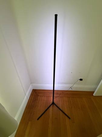 Tall thin LED lamp. 38.5 inches high & 1 inch thick. 2 legs are 17.5 inches long.