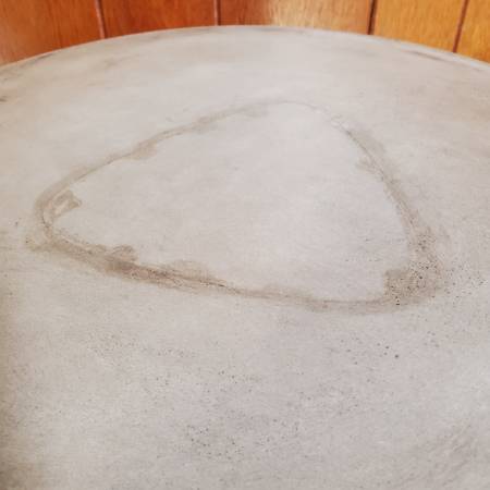 Cool tall minimalist/industrial piece to add a dimensional accent to your setting. Sourced with other modern designer pieces lend to it being a quality make (can't decipher the stamp), though a production piece hailing from Vietnam. Cool texture and tone, with only real sign of use being some remnant of likely wax holding whatever perched previously in place. Nylon glides on the bottom (one missing), commonly seen suitable for indoor/outdoor use (sealed).