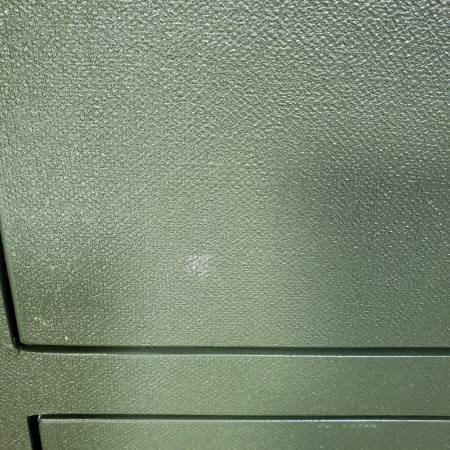 High quality low boy from the boutique designer in a unique, full "linen" wrap creating texture and dimension. Drawers are butter (also wrapped inside), heavy-weight construction and vibrant gold hex knob pulls. Does have some white scuffing in parts (possibly a paint spot on second drawer from the bottom). Well worth getting a paint match to touch up if desired to reclaim a pristine piece at a fraction of the cost.