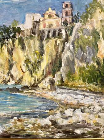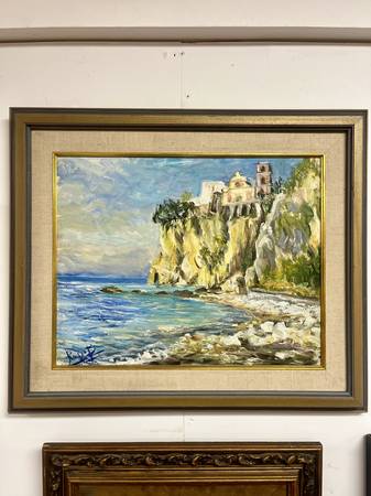 Mediterranean Landscape Oil Painting. Signed by Artist Measurements: 26”W x 23”L