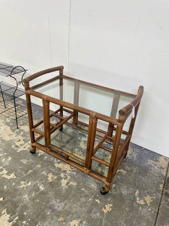 Mid Century Bamboo & Glass Bar Cart Dimensions: 31”W x 19”D x 33”H