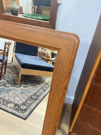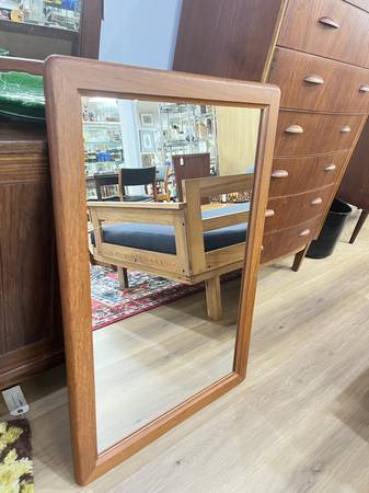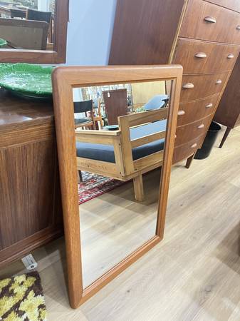 Mid Century Danish Teak Mirror Measurements: 23.75”W x 35.5”H