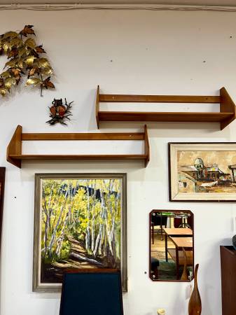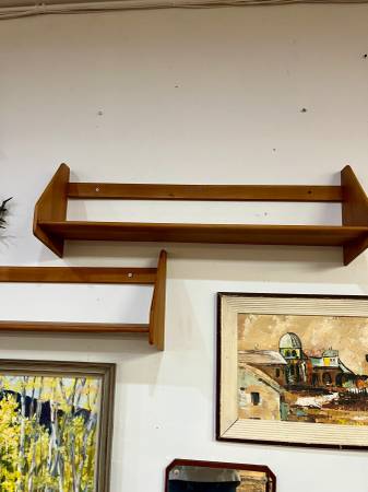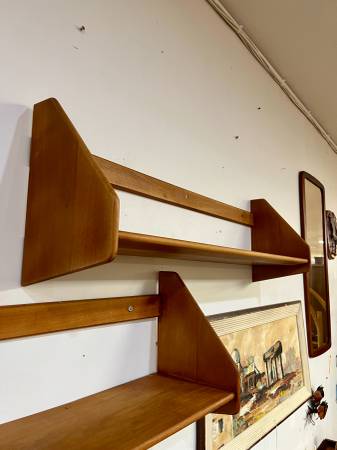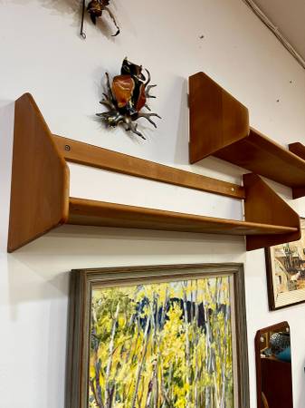 Mid Century Danish Wall Mounted Shelf by Borge Mogensen for FDB 2 Shelves available, there are sold individually. Measurements: 35.5”W x 8”D x 12”H