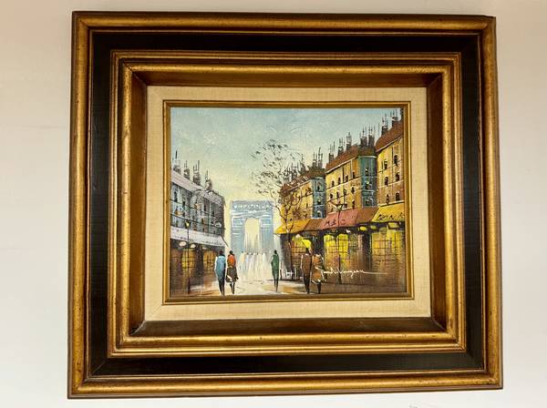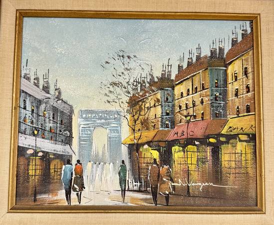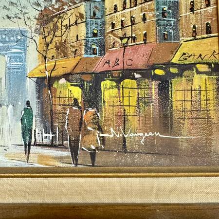 Mid Century Framed Oil Painting by N. Vangreen - Paris Measurements: 18”W x 16”H