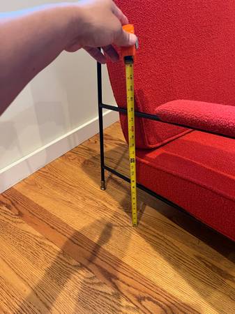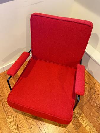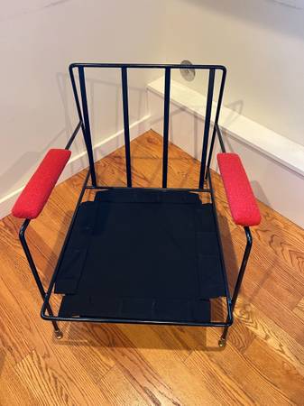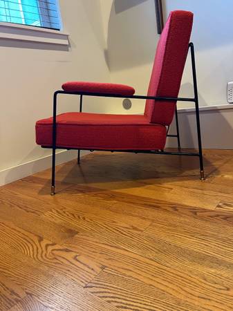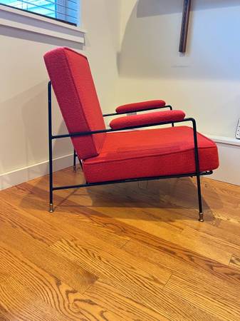 Rare Mid Century Inco Lounge Iron Chair with newly upholstered Knoll Boucle red fabric and foam.