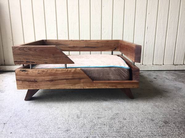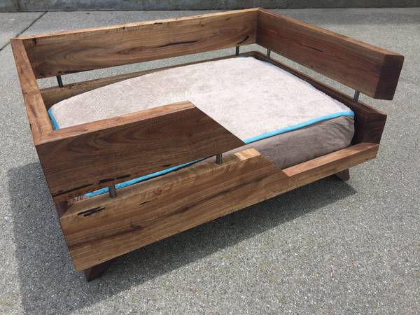 Solid walnut dog bed. Treat your pet. Memory foam mattress. Industrial steel base. Size: Small - XL Delivery in the Bay Area is included Bed, dog bed, pet bed, custom furniture, live edge, walnut,...