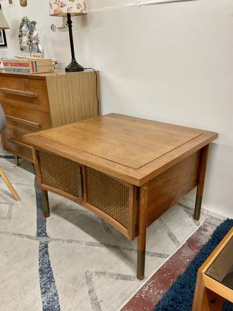 Mid Century Walnut Side Table with Cabinet Dimensions: 30”W x 30”D x 21”H