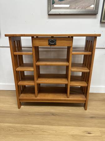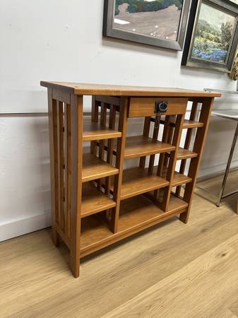 Mission Style Hardwood Bookcase with Drawer Natural Measurements: 30.75”W x 12”D x 30”H
