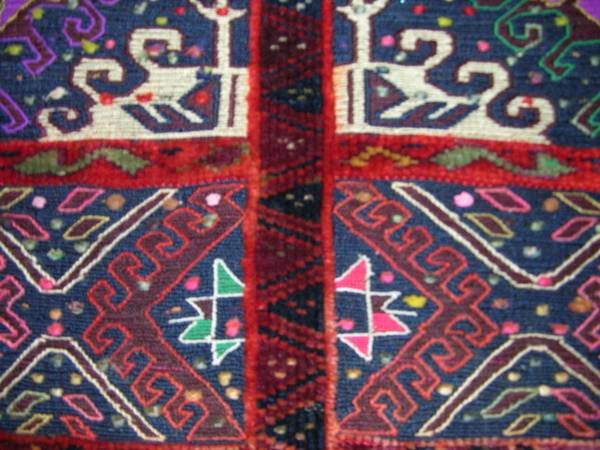 Handmade ~1935 all wool, partly knotted pile carpet, partly flat weave, partly cicim (embroidery 315), measures 6'4" X 3'2". Excellent, as new Bahktiari dowry piece stored all it's life. No...