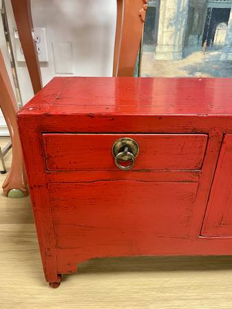 North China Red Laquer Chest w/ Drawers Measurements: 37”W x 11”D x 15”H
