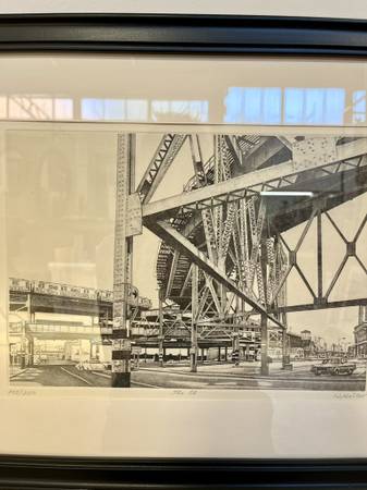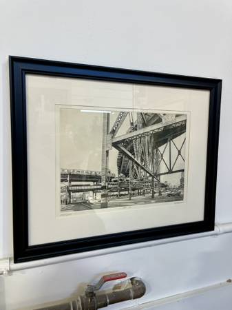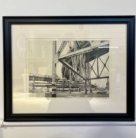 Original 1980 Ink Etching Industrial Art by Rudolf Hasler Dimensions: 19.75”W x 16”L
