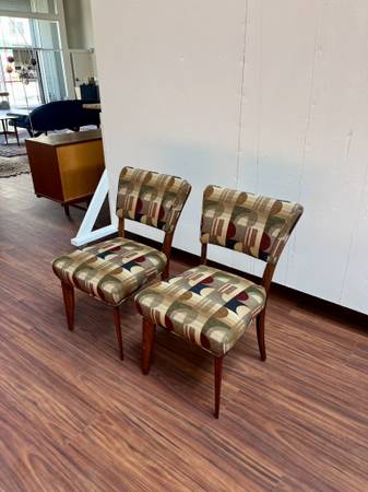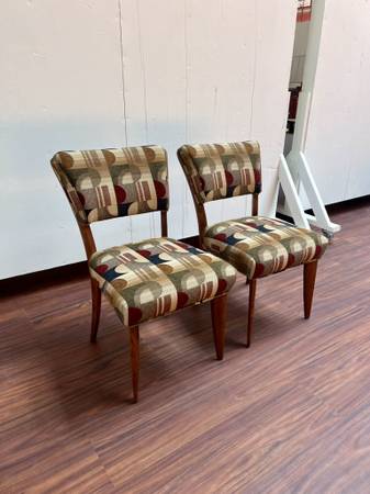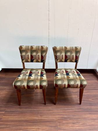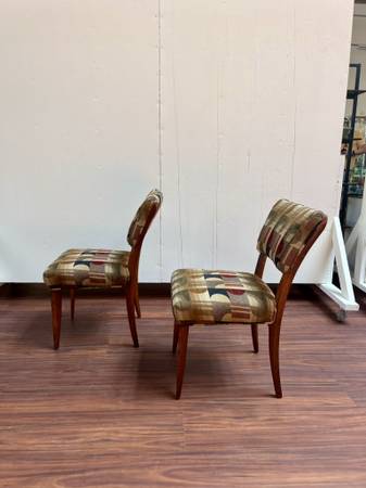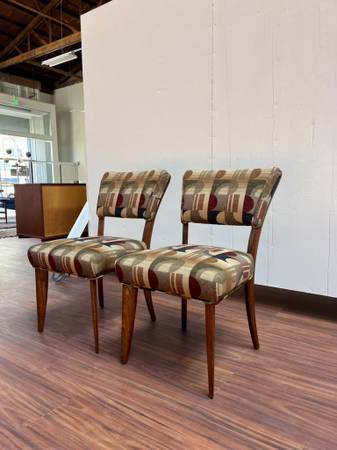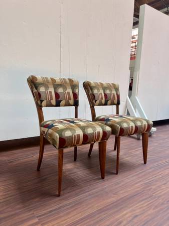 Pair of Chairs of Art Deco Upholstered Chairs, Paul Frankl Design Measurements: 18.50”W x 18.50”D x 33.00”H