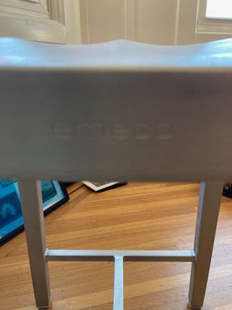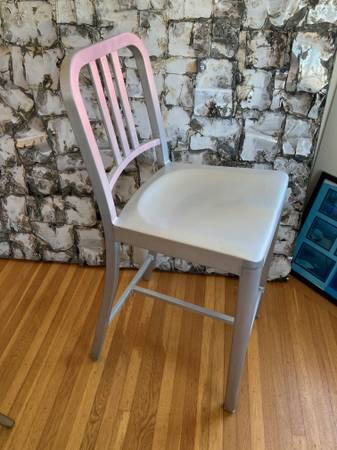 These are in very good used shape with classic styling that fits many decors. Seat height is 24". These are well built, and super light. These were a splurge purchase for our previous home, but we've moved, and we don't have any counter height seating, so these sadly need to go.