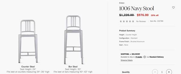 Retail price is usually ~$1200+tax each, and even on sale it's hard to find them much cheaper than $1000 (see DWR screen shot). I'm asking $1200 for the pair. No tax, no shipping! I would consider trades for an MCM sideboard or living room chair, Lane dining set (anybody got 6 Lane Rhythm dining chairs they don't want?), or a Fischer tube amp/tuner.