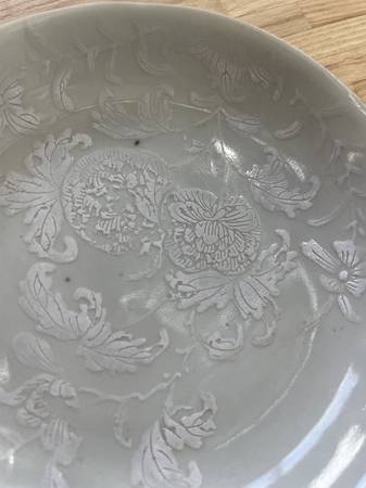 Qingbai dish w/floral dec. Dimensions: 4.75”W x 4.75”D