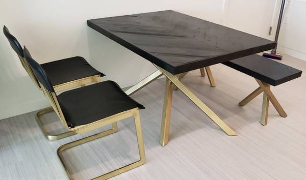 Reclaimed Redwood Chevron dining table. Industrial steel base. 72x36x30 Custom sizes available Delivery and setup in the Bay Area is included Desk, table, conference table, home decor interior...