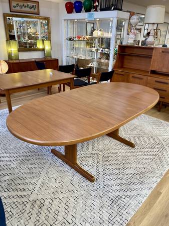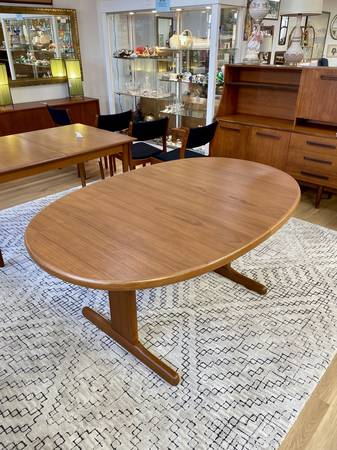 Refinished Danish Teak AM 69 Butterfly Leaf Oval Extendable Dining Table (1 Leaf). Made in Denmark. Measurements: 63.75"W×42"D×29"H Extended: 83.75"W × 42"D x 29"H Leaf (x1): 19.75”W x 42”D