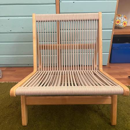 Lounge Chair, great condition Mid-Century Modern GUBI style Have barely used, unfortunately it’s a little too spacious for my tiny studio apartment. Solid wood frame rope chair, very comfortable!...
