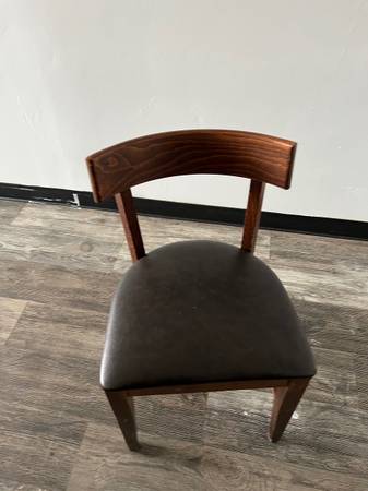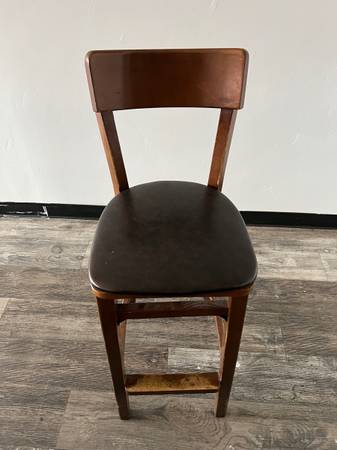 Selling 49 commercial restaurant chairs. Brown chairs in good condition with normal wear and tear. Variety of black, red and green cushions on seats $30 for ladder chairs $40 for bar stools Also...