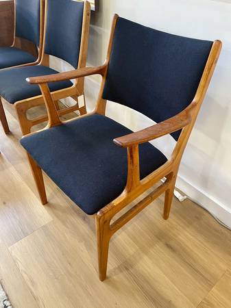 Reupholstered Vintage Mid Century DScan Teak Wood Black Fabric Arm Chair Measurements: 20.5”W x 19”.5”D x 33.5"H Seat: 17.5"H Arm Height: 26.5"H