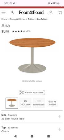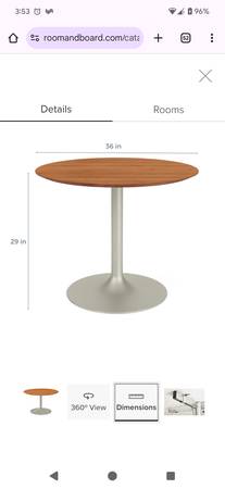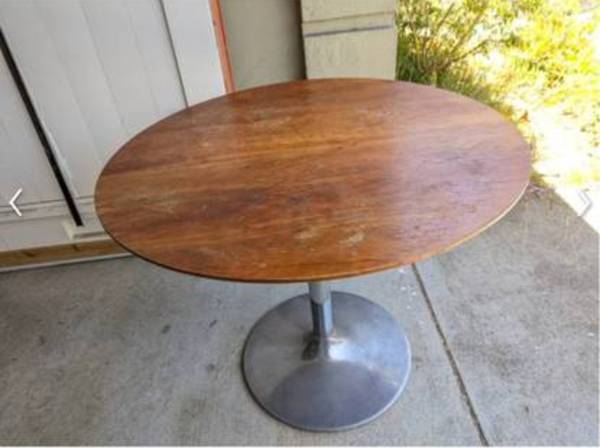 Hello, this table was over $1,000 new at Room & Board. Currently the wooden top needs to be refinished. If you are down with sandpaper and have a modicum of skill, this is a diamond in the rough.
