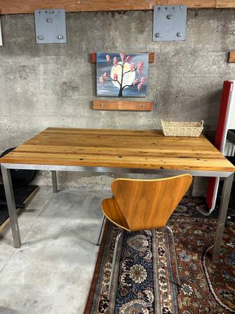 Selling a versatile table. Can be used as a dining table or a desk. Room and board no longer makes these in chestnut. 60x36x29 Stainless steel legs