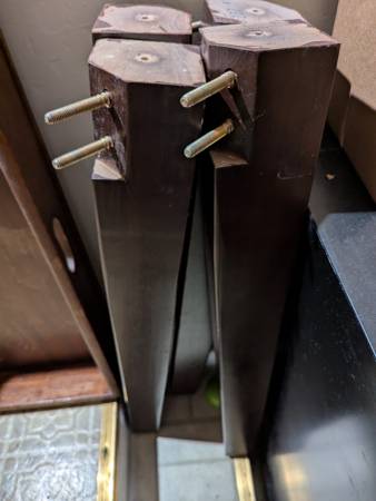A nice heavy duty solid wood dining room table and 4 matching solid wood chairs set, $250, or Best offer. Table measures 42"x62".
