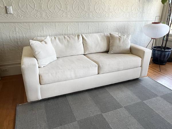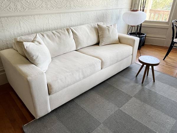 Great West Elm Urban 84" Sleeper Sofa. Upholstered in Alabaster fabric and includes two 18" x 18" throw pillows. New mattress in excellent condition. Arms are great to set down a morning cup of...