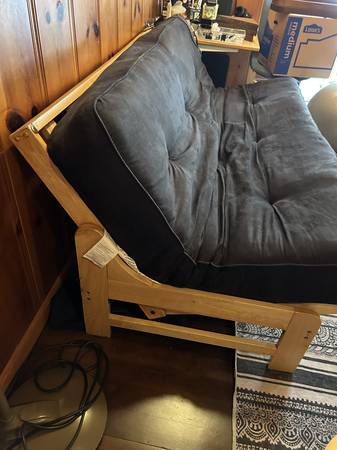 This is a futon that has a nice frame solid wood and very strong. The mattress is 12" thick and very comfortable. Must pick up. Price $0